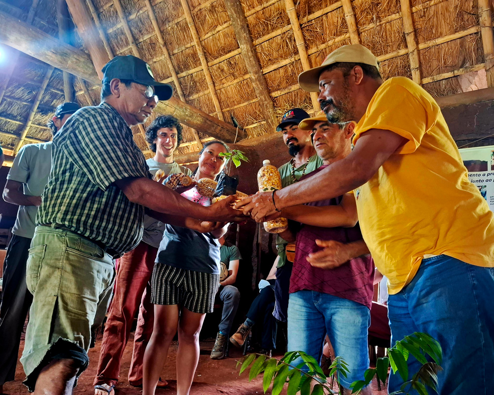 A Teia dos Povos já fez ações de entregas e trocas de sementes com os povos Maxakali, Tupinambá, Pataxó e Guarani, além de comunidades quilombolas e assentamentos da reforma agrária. “Quando a gente leva a semente, a gente vai de mão cheia, não vai dialogar com palavras, mas com algo concreto. E saímos com o coração cheio de esperança por ver que, com a dificuldade e o sofrimento, tem gente lutando”, relata Joelson.