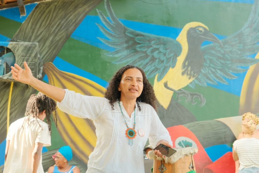 “A gente não vai mais apanhar de homem. A gente não quer morrer. Esse momento agora é pra gente se ver, se abraçar e sair daqui com as forças que a gente já tem, para enfrentar o que enfrentamos em nossos territórios. Também vamos pensar estratégias de como ajudar os homens a resolver o problema deles”, afirmou a mestra Marizelha Lopes, liderança na Ilha de Maré, durante a primeira gira de conversa. “A gente precisa contar a nossa experiência de violência, mas também de experiências que tem dado certo pra gente enfrentar esses problemas”, completou.